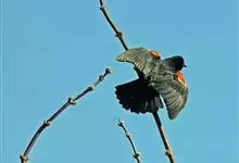 红翅黑鹂,是美洲黑鸟中最出名的是红翅黑鸟,体长19-24厘米,翼展30-37厘米,体重65克,春天雄鸟羽色翅膀上端橘红色连带小块白色,似大帅的红色肩章,头部及爪呈深蓝光泽,所有的羽毛都呈蓝黑色,…全部>>
