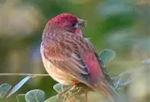普通朱雀是雀形目雀科朱雀属鸟类,又名红朱雀、马料、青麻料。雄鸟上体红色,下体淡红色;头部、喉部、胸部及腰部亮红色;背部褐色染红色;两翼及尾黑褐色,羽缘染红色。雌鸟上体橄榄褐色,下体近白色,…全部>>