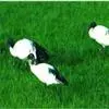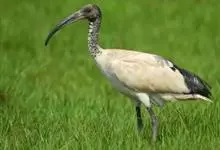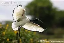 圣鹮头、颈黑色,身体白色,初级和次级飞羽尖端黑色。喙长且厚、黑色下弯,跗蹠与趾黑色。下背部有大量黑色纱状装饰羽,翼下裸露皮肤红色,体侧有时带黄褐色。亚成鸟的头、颈有羽毛,斑驳黑色带有白色纵纹,…全部>>