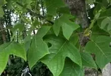 鹅掌楸 Sarg.),别名马褂木、宝剑木、九层皮,为木兰科鹅掌楸属落叶大乔木。小枝灰色或灰褐色;叶马褂状,叶柄长4-8cm;花杯状,浅黄色;果实为聚合果,顶端钝或钝尖;花期5月,果期9~10月。…全部>>