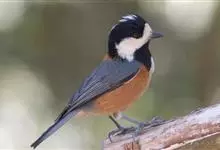 杂色山雀,是山雀科山雀属的一种动物。体重17-18克,体长125-140毫米。雌雄羽色相似。额、眼先、耳羽至颈侧乳黄色,头顶至后颈黑色,后头中央有一白斑。上背栗色,上体余部及翼蓝灰色。颏、喉黑色,…全部>>
