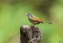 灰眶雀鹛,是画眉科、雀鹛属的鸟类。灰眶雀鹛是小型鸟类,头、颈和脸褐灰,头侧和颈侧深灰;上体和翅、尾表面橄榄褐;喉呈灰色;胸浅皮黄;腹部和胁部皮黄至赭黄,腹部中央浅淡。…全部>>