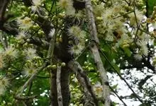 水翁蒲桃是桃金娘科、蒲桃属植物。乔木,高15米;树皮灰褐色,颇厚,树干多分枝;嫩枝压扁,有沟。叶片薄革质,长圆形至椭圆形,长11-17厘米,宽4.5-7厘米;叶柄长1-2厘米。圆锥花序生于无叶的老枝上,…全部>>