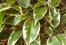 花叶垂榕是桑科、榕属常绿灌木,株高1-2米。分枝较多,枝干容易生气根,有下垂的枝条。叶互生,密集,阔椭圆形,革质光亮,全缘,淡绿色,叶脉及叶缘具不规则的白色或黄色斑块,瘦果卵状肾形,短于花柱。…全部>>