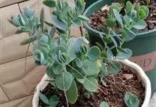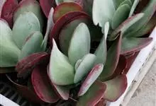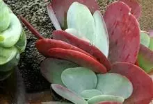 唐印为景天科伽蓝菜属的多年生肉质草本植物。植株中型,株高50厘米,宽20厘米,多分枝;叶片肉质,对生,卵形,全缘,先端钝圆,叶片淡绿色至灰绿色,表面被有厚厚的白粉,光照充足时,叶缘呈红色;圆锥花序,…全部>>