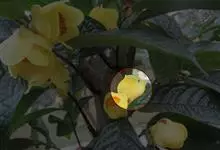 金花茶 Sealy)山茶科山茶属木本植物。幼枝浅褐色,当年生小枝略带紫色棕色,无毛;叶革质,上面深绿色,发亮,无毛,下面浅绿色;花瓣为金黄色,肉质;果实扁球形,先端凹;种子为棕色,半球形。…全部>>