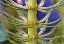 杉叶藻是车前科杉叶藻属的多年生水生草本植物。全株无毛;茎直立,多节,常带紫红色;枝沉水茎,圆柱形,稍硬而挺直,暗褐色;叶轮生,线形,全缘;花单生叶腋,常为两性;核果窄长圆形,光滑,顶端近平截。花期6月。…全部>>