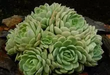 子持莲华 Hara)是景天科瓦松属多年生肉质草本植物。茎葡富,可萌生侧芽、易群生,叶片呈半圆形或长卵形,排列如莲座状、蓝绿色,表面略有白粉,…全部>>