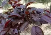 紫叶李是蔷薇科李属樱桃李的一个品种,别名红叶李、真红叶李等,落叶灌木或小乔木。其多分枝,枝条细长,暗灰色,小枝暗红色,无毛;冬芽卵圆形,紫红色;叶片椭圆形、卵形或倒卵形,极稀椭圆状披针形,…全部>>