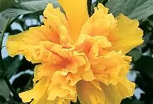 重瓣朱槿是锦葵科、木槿属常绿灌木植物;小枝疏被星状柔毛单叶互生,卵形或卵状披针形,基部圆形;叶柄长;托叶早落;花重瓣,较朱槿为大;花萼小,钟形,基部具有苞片多枚;花瓣多枚排列成彩球状,…全部>>