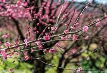 宫粉梅 Rehd.)是蔷薇科、李属植物,梅花品系中真梅系直枝梅类宫粉型,其花复瓣至重瓣,呈或深或浅的红色。落叶乔木,高达10米。树干褐紫色,有纵驳纹,小枝细而无毛,多为绿色。叶广卵形至卵形,…全部>>