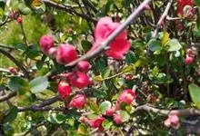 贴梗海棠Nakai)是蔷薇科、木瓜海棠属植物。落叶灌木,高达2米,枝条直立开展,有刺。叶片卵形至椭圆形,稀长椭圆形,长3-9厘米,宽1.5-5厘米。花先叶开放,3-5朵簇生于二年生老枝上。…全部>>