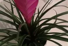 紫花凤梨,是凤梨科铁兰属的多年生草本植物。株高不及30厘米;叶片拱状线形,叶丛族生于短缩茎上,斜出或横生,叶为绿色,基部具有紫褐色彩晕;短穗状花序,总苞片粉红色,呈扇形;小花青紫色,…全部>>