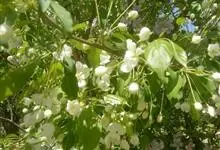 山荆子 Borkh.):为落叶乔木,树高可达4-5米,最高可达10米以上。灰褐色,光滑,不易开裂。新梢黄褐色,无毛。嫩梢绿色微带红褐。叶片椭圆形,先端渐尖,基部楔形,叶缘锯齿细锐。伞形总状花序。花白色,…全部>>