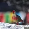 血雉雉科血雉属鸟类,别名血鸡、松花鸡,血雉的雄鸟大覆羽、尾下覆羽、尾上覆羽、脚、头侧、腊膜为红色,故称血雉。其别名甚多,各地皆异。在甘肃,因其胸侧和翅上覆羽沾绿,被称为“绿鸡”;因其羽毛形似柳叶,…全部>>