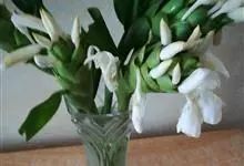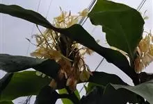 姜花又名野姜花。是姜科姜花属的多年生草本植物,茎高1-2米;叶片长圆状披针形或披针形,叶面光滑,叶背被短柔毛;穗状花序顶生,椭圆形,花芬芳,白色;蒴果卵状三棱形,微黄绿色;种子鲜红色,具橘红色的假种皮。…全部>>