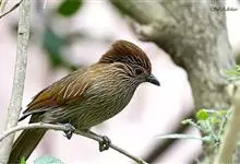 条纹噪鹛是画眉科、噪鹛属中型鸟类,体长28-32厘米。头具短的羽冠,上体栗褐色,飞羽外翻蓝灰色。下体棕栗色,腹以后转为褐白色。除飞羽和尾羽外,所有上、下体羽均具白色羽干纹。极为醒目。野外特征明显,…全部>>