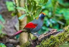 赤尾噪鹛中型鸟类,体长24~28厘米。头顶至后颈红棕色,两翅和尾鲜红色,眼先、眉纹、颊、颏和喉黑色,眼后有一灰色块斑。其余上下体羽大都暗灰或橄榄灰色。特征极明显,特别是通过鲜红色的头顶、翅和尾。…全部>>