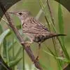 矛斑蝗莺:体长11-14厘米,体重9-13克。上体橄榄褐色密布粗著的黑褐色纵纹,眉纹淡黄色细而不明显,下体乳白色具黑色纵纹,尾羽腹面无白端。虹膜暗褐色;嘴黑褐色,下嘴基黄褐色;脚肉色。…全部>>