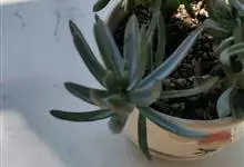 筒叶花月,是景天科青锁龙属的多年生草本植物。植株多分株,灌木状,茎较粗壮,圆柱形,表皮灰褐色;叶片肉质,互生,呈圆筒状,簇生于茎或分枝顶端,叶端呈斜截形,截面为椭圆形;花呈星状,淡白色;花期秋季。…全部>>