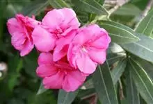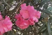 夹竹桃,又名红花夹竹桃、欧洲夹竹桃,是夹竹桃科夹竹桃属的一种常绿直立大灌木,枝条灰绿色,含水液。叶披针形,3叶轮生。聚伞花序顶生,花冠粉红至深红色,花冠漏斗状,有特殊香味。蓇葖果,圆柱形。种子长圆形,…全部>>