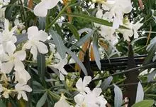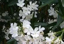 白花夹竹桃是夹竹桃科、夹竹桃属植物夹竹桃的栽培品种。常绿直立大灌木,枝条灰绿色;嫩枝条具稜,被微毛,老时毛脱落。叶3-4枚轮生,下枝为对生,叶面深绿,叶背浅绿色;侧脉纤细平行与中脉成直角;叶柄扁平,…全部>>