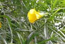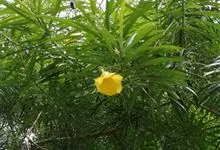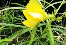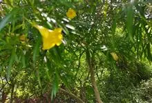 黄花夹竹桃K. Schum.),又名“酒杯花”“柳木子”“黄花状元竹”,是夹竹桃科,黄花夹竹桃属下的常绿乔木植物。高达5m,全株无毛,树皮棕褐色;叶互生,近革质,线形或线状披针形;花大,黄色,具香味,…全部>>