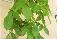 胡桃,是胡桃科胡桃属的落叶乔木植物。树干较别的种类矮,树冠广阔;小枝灰绿色无毛;小叶呈椭圆状卵形至长椭圆形;果序短;果实近于球状,无毛;果核稍具皱曲,顶端具短尖头;隔膜较薄,…全部>>