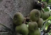 大果榕是桑科榕属的小乔木,株高可达10米;幼枝被柔毛;叶互生,宽卵状心形或近圆形;雄花无梗、匙形、花丝长,雌花生于雌株榕果内,子房白色;榕果簇生于树干基部或老茎短枝上、扁球形或陀螺形,…全部>>