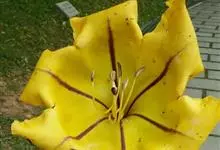 金杯藤 P.S. Green)是茄科、金杯藤属多年生常绿大型藤本。茎及枝条粗壮。叶片互生。长椭圆形。先端突尖。叶面有光泽。全株具有毒乳汁。花顶生,单朵或数朵,花苞棒槌状。从绿色转变为淡黄色。…全部>>