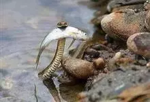 水蛇,是爬行纲蛇目游蛇科。体全长62-72厘米,背面灰褐色;体侧有二鳞宽、五鳞高的黑色横斑,各黑斑间相隔2-3鳞,这些黑斑向下延伸至腹鳞中间而上,…全部>>