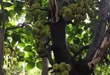 大果榕是桑科榕属的小乔木,株高可达10米;幼枝被柔毛;叶互生,宽卵状心形或近圆形;雄花无梗、匙形、花丝长,雌花生于雌株榕果内,子房白色;榕果簇生于树干基部或老茎短枝上、扁球形或陀螺形,…全部>>