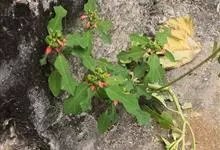 猩猩草:常绿或半常绿灌木,盆栽时株高0.5米-2米,在亚热带地区可长到6米以上。茎直立而光滑,单叶互生,卵状椭圆形至阔披针形,具不规则的深缺刻。长10-15厘米。花小,有蜜腺,排列成密集的伞房花序。…全部>>