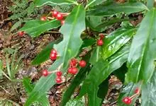 九管血属于矮小灌木,茎匍匐生长,叶片坚纸质,狭卵形或卵状披针形,伞形花序着生于侧生特殊花枝顶端,直径约6毫米的果呈球形,为鲜红色。生长于阴湿之地,…全部>>