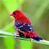 红梅花雀小型鸟类,体长9-10厘米。雄鸟通体朱红色,背、肩、胸等满布白色小斑点,两翅和尾黑褐色均具白色端斑,嘴红色,脚蜡黄色。雌鸟上体淡褐色或赭褐色,翅上中覆羽、大覆羽和内侧飞羽末端具白色斑点,…全部>>