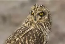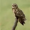 短耳鸮又名小耳木兔、田猫王、夜猫子等,是鸮形目鸱鸮科耳鸮属中小型猛禽动物。成鸟面盘显著,眼周黑色;眼先及内侧眉纹灰白色,面盘余部棕黄色杂以黑色细羽干纹;耳簇羽短小而几乎不外露,…全部>>