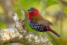 红梅花雀小型鸟类,体长9-10厘米。雄鸟通体朱红色,背、肩、胸等满布白色小斑点,两翅和尾黑褐色均具白色端斑,嘴红色,脚蜡黄色。雌鸟上体淡褐色或赭褐色,翅上中覆羽、大覆羽和内侧飞羽末端具白色斑点,…全部>>