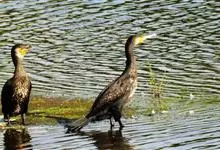 普通鸬鹚是属于鲣鸟目鸬鹚科鸬鹚属鸟类,又名水老鸦、鱼鹰、乌鬼、黑鱼郎等。体长720—900毫米,雌雄同型。通体黑色,有绿褐色金属光泽;喙厚重,喙基和喉囊橙黄色,脸颊及喉白色;夏羽颈及头饰具白色丝状羽,…全部>>