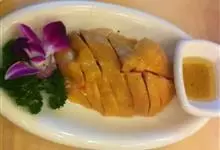 白切鸡又叫白斩鸡,是粤菜系鸡肴中的一种,始于清代的民间酒店。属浸鸡类。其特点为制作简易,刚熟不烂,不加配料且保持原味。白切鸡通常选用三黄鸡与沙姜、蒜茸、葱等食材,慢火煮浸后,晾干切块。成菜后,…全部>>