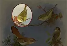 极北柳莺:体长11-13厘米,体小偏灰橄榄色,具明显的黄白色长眉纹,眼先及过眼纹近黑。上体概呈灰橄榄绿色;具甚浅的白色翼斑,大覆羽先端黄白色,形成一道翅上翼斑;中覆羽羽尖成第二道模糊的翼斑;下体白色…全部>>