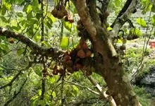 大果榕是桑科榕属的小乔木,株高可达10米;幼枝被柔毛;叶互生,宽卵状心形或近圆形;雄花无梗、匙形、花丝长,雌花生于雌株榕果内,子房白色;榕果簇生于树干基部或老茎短枝上、扁球形或陀螺形,…全部>>
