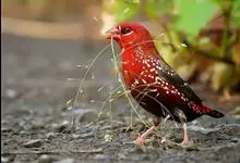 红梅花雀小型鸟类,体长9-10厘米。雄鸟通体朱红色,背、肩、胸等满布白色小斑点,两翅和尾黑褐色均具白色端斑,嘴红色,脚蜡黄色。雌鸟上体淡褐色或赭褐色,翅上中覆羽、大覆羽和内侧飞羽末端具白色斑点,…全部>>