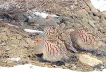 雉鹑:是雉科雉鹑属二种鸟类红喉雉鹑和黄喉雉鹑的统称。体长30-54厘米。上体大都褐色,头顶与两侧深灰,头顶与枕羽中央有黑褐色纵纹。飞羽暗褐色,羽缘具白色和棕色端斑。中央一对尾羽灰褐色具白色端斑,…全部>>