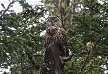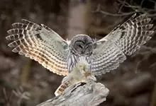 灰林鸮是鸱鸮科、林鸮属鸟类。体长约40厘米;头大而圆,没有耳羽,面盘明显,橙棕色或黑褐色;上体暗灰色,呈棕、褐斑杂状;飞羽暗褐,外侧翅上夏羽的外翈棕白色,在翅上形成显著的棕白色翅斑;下体白或皮黄色,…全部>>