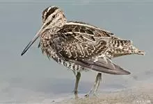 泽鹬:小型涉禽,体长19-26厘米。嘴长,相当纤细,直而尖。颜色为黑色,基部绿灰色,脚细长,暗灰绿色或黄绿色。夏季上体灰褐色具黑色斑,腰白色并向下呈楔形延伸。下体白色,颈、胸具细的黑色纵纹。…全部>>