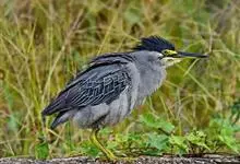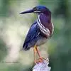 绿鹭:是鹳形目鹭科绿鹭属鸟类。体型小,头顶黑,枕冠亦黑色,上体蝉灰绿色,下体两侧银灰色;前额至后枕及冠羽墨绿色,眼后有一白斑,颊纹黑色;颚纹白色,后颈、颈侧和体侧烟灰色;背部披灰绿色矛状长羽,…全部>>