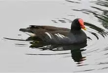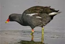 黑水鸡:是鹤形目、秧鸡科的鸟类,共有12个亚种。中型涉禽,体长24-35厘米。嘴长度适中,鼻孔狭长;头具额甲,后缘圆钝;嘴和额甲色彩鲜艳。翅圆形,第2枚初级飞羽最长,或第2枚和第3枚初级飞羽等长,…全部>>