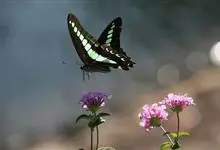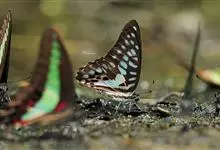 青带凤蝶Graphium sarpedon ,又名青凤蝶,是最普遍的中型凤蝶,飞行速度很快。青带凤蝶的翅膀中央有许多浅蓝色的斑点,很整齐地排列成一条直线。这些斑点由上而下逐渐变大,就像一条青色的带子。全部>>