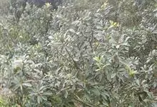 石楠 Kalkman),是蔷薇科石楠属的常绿乔木,高5~12米,株型紧凑,树冠圆球形。树枝为褐灰色;鳞片为褐色,没有毛;叶片革质,长椭圆至侧卵状椭圆形,有锯齿,新叶红色光亮。复伞房花序,白色小花,…全部>>