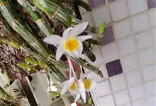 玫瑰石斛是兰科石斛属的多年生附生草本植物。茎斜下或下垂,青绿色,圆柱形,节间鞘具绿或白色相间的条纹;叶窄披针形;花序短,生于已落叶的老茎上部,花序梗长,萼片和花瓣白色,上部带淡紫色,干后蜡质状,…全部>>